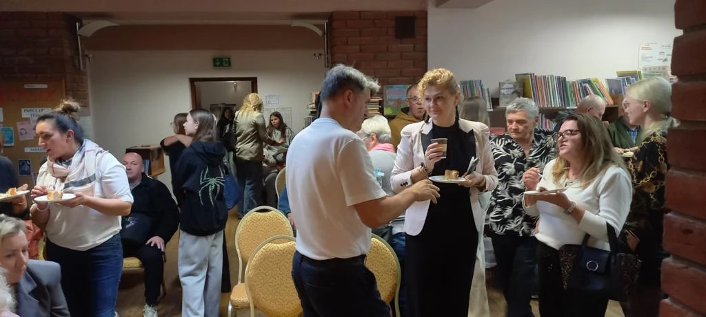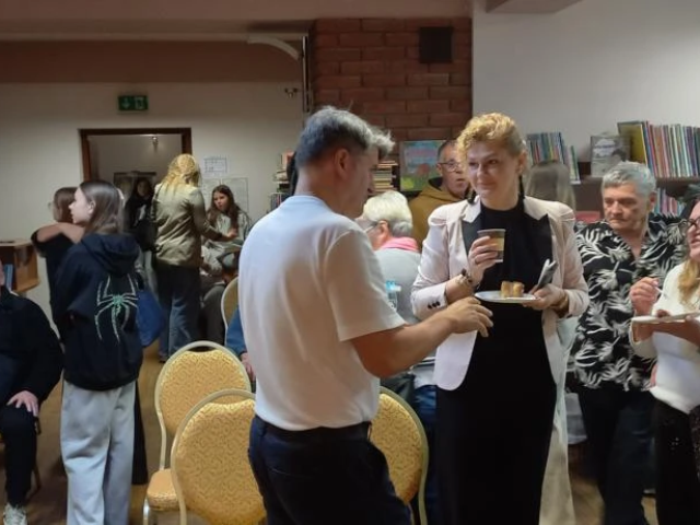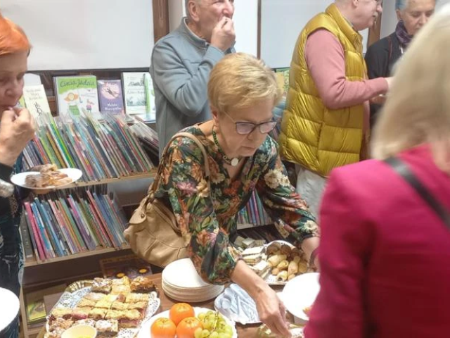Podczas koncertu nie zabrakło też przerwy na słodki poczęstunek. Organizatorzy podziękowali uczestnikom za liczne przybycie i zaprosili na kolejne wydarzenia kulturalne w bibliotece.