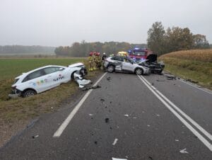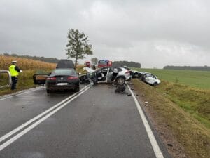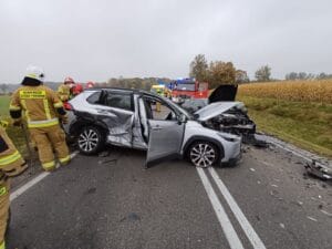 Do poważnego wypadku doszło w czwartek, 16 października 2025 roku, na drodze krajowej nr 58 w pobliżu miejscowości Kożuchy Małe. W zderzeniu trzech samochodów osobowych ucierpiały trzy osoby dorosłe.