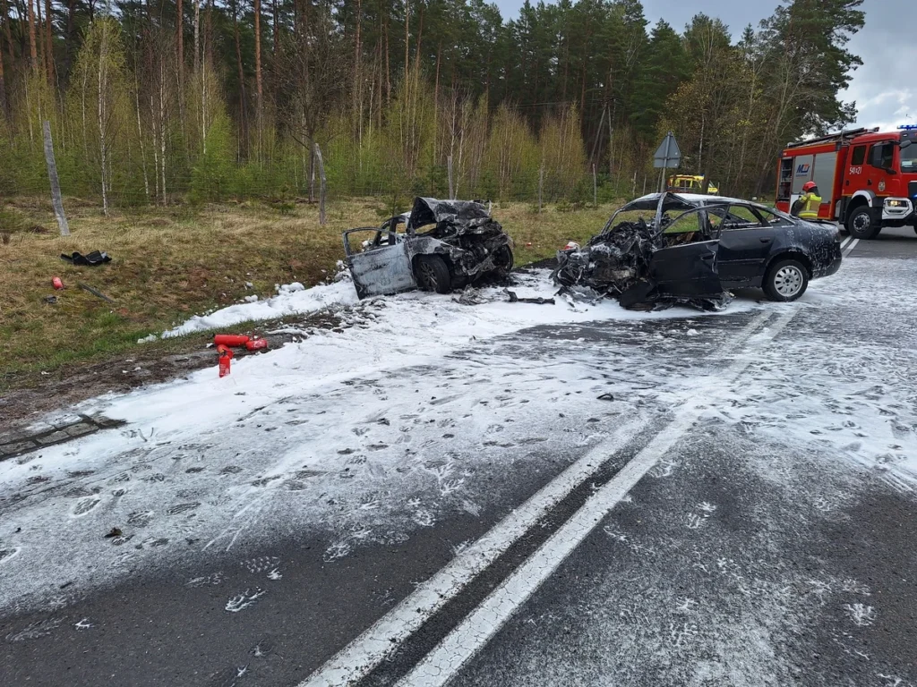 Dwie osoby zginęły w tragicznym wypadku na drodze krajowej nr 58 na odcinku Ruciane-Nida - Pisz. Do zderzenia dwóch samochodów osobowych doszło w niedzielny poranek, 26 kwietnia, w pobliżu miejscowości Szeroki Bór. Oba auta stanęły w ogniu i doszczętnie spłonęły.