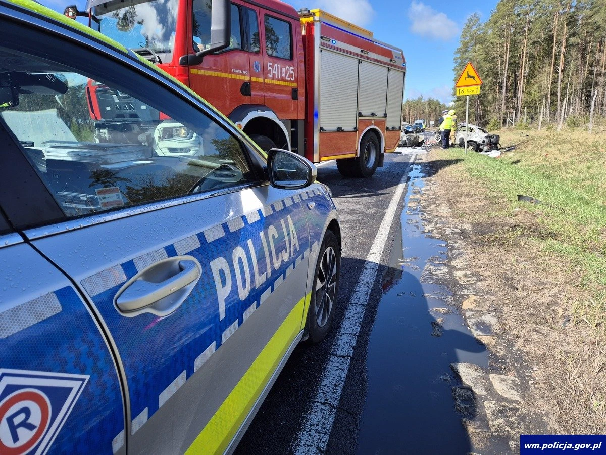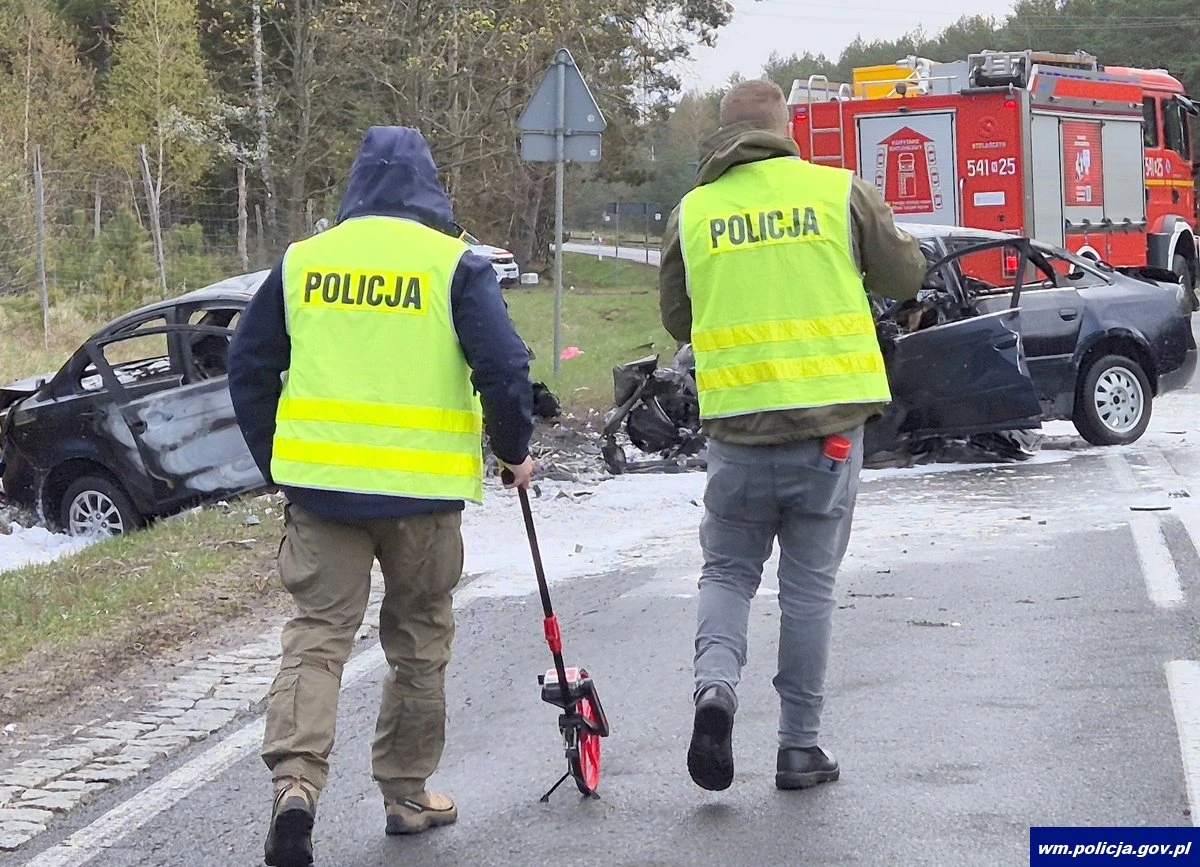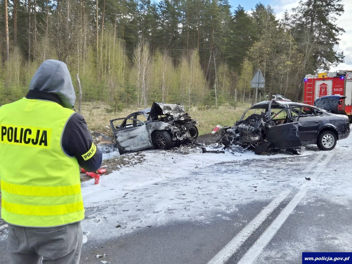 W niedzielę 26.04.2026 r. po godz. 8.00 na drodze krajowej nr 58 na trasie Pisz-Ruciane-Nida, na wysokości Szerokiego Boru, zderzyły się Audi i Mitsubishi. Oba samochody stanęły w ogniu. Kierowcy obu aut zginęli na miejscu.